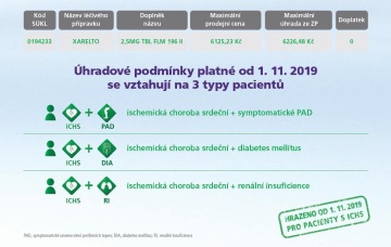 P: Rivaroxaban 2,5 mg, podávaný společně s kyselinou acetylsalicylovou, je hrazen u dospělých pacientů: